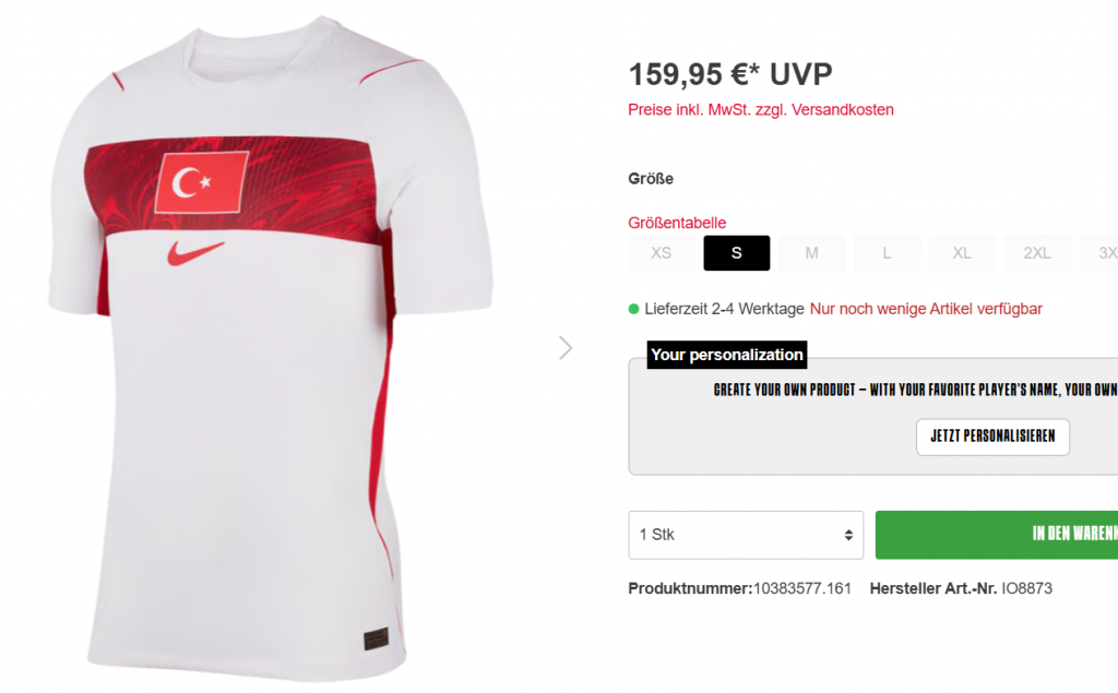 Diğer dikkat çekici nokta ise Türkiye milli takım formasının Avrupa’da daha ucuza satılması oldu. Avrupa’da yaklaşık 160 euro’ya satılan Türkiye milli takım forması Türkiye’de 172 euro’ya satılıyor.