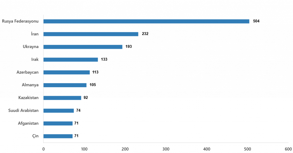 2025 yılında ülke uyruklarına göre en fazla konut satışı sırasıyla 3 bin 649 ile Rusya Federasyonu, bin 878 ile İran ve bin 541 ile Ukrayna vatandaşlarına yapıldı. Aralık ayında ise sırasıyla 504 ile Rusya Federasyonu, 232 ile İran ve 193 ile Ukrayna vatandaşlarına yapıldı.